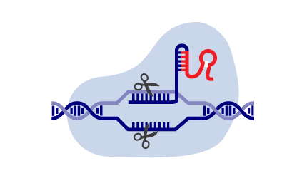 CRISPR/Casによるゲノム編集システムは、Casと呼ばれる切断酵素と、ガイドRNA(gRNA)と呼ばれる位置決めをする核酸の2つの部品で構成されます。
